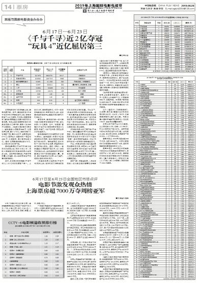 - 电影节激发观众热情 上海票房超7000万夺周榜亚军
