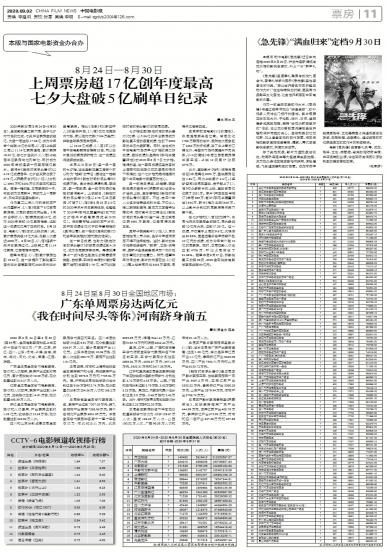 - 上周票房超17亿创年度最高 七夕大盘破5亿刷单日纪录
