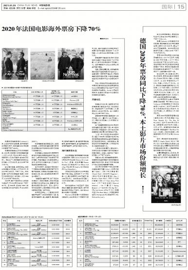 根据法国电影联盟(Unifrance)1月12日发布的初步数据,由于新冠肺炎病毒大流行,法国电影20...