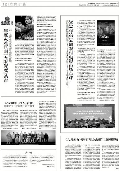 - 农村流动数字电影市场(2021年4月3日—2021年4月9日):