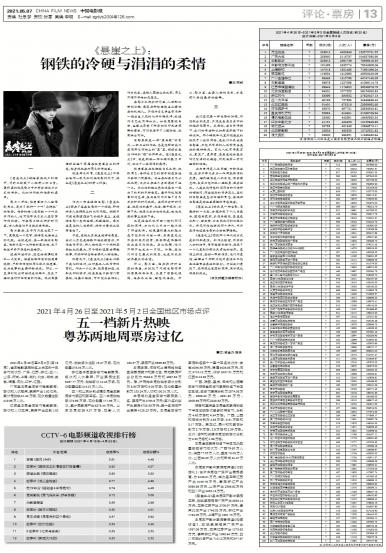 2021年4月26日至5月2日(第18周),全国电影票房排名上半区的十五省市依次为:广东、江苏、浙江...