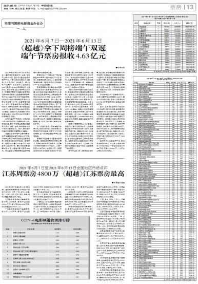 - 江苏周票房4800万 《超越》江苏票房最高