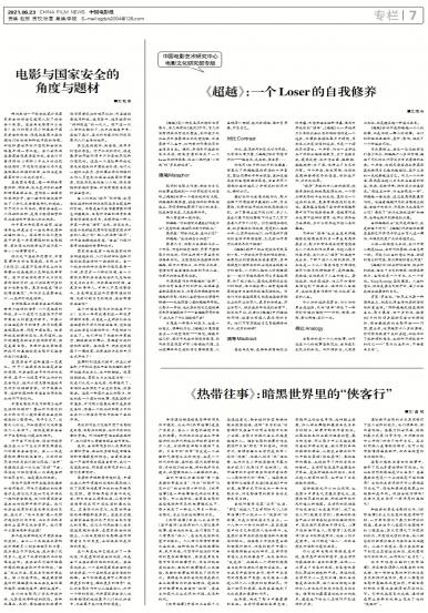 稍加关注一下就会发现今天国家安全的概念已经深入到了社会各个角落。这些与电影有什么关系?我们的影片很少...