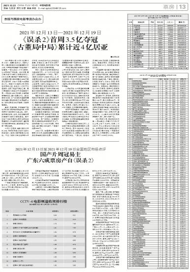 2021年第51周(12月13日至12月19日),随着《误杀2》、《雄狮少年》、《跨过鸭绿江》三部重...