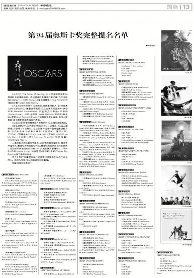 《犬之力》(The Power of the Dog)以12项提名领跑第94届奥斯卡金像奖提名。其他...