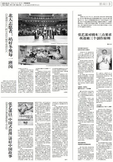 - 张艺谋对剧本三点要求 我遵循三个创作原则