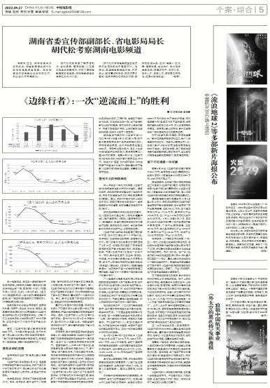 本报讯 近日,湖南省委宣传部副部长、省电影局局长胡代松到湖南电影频道考察。湖南省委宣传部电影处处长欧...