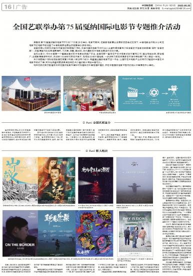 本报讯 第75届戛纳国际电影节于5月17日至28日举办,电影节期间,在国家电影事业发展专项资金的支持...