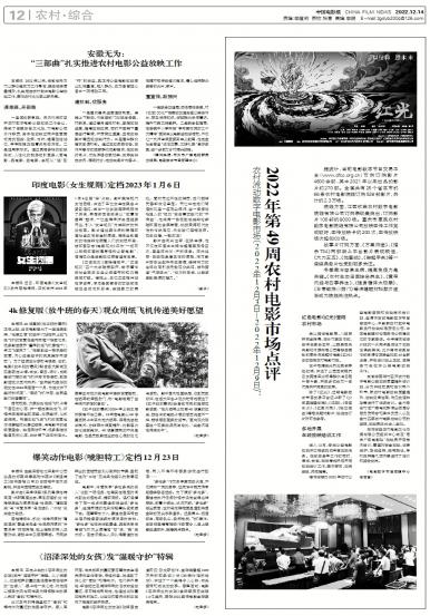 - 2022年第49周农村电影市场点评