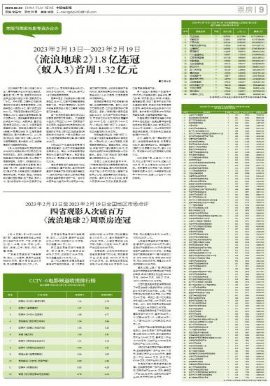 2月13日至2月19日(2023年第7周),全国电影票房排名上半区的十五省市依次为:广东、江苏、浙江...