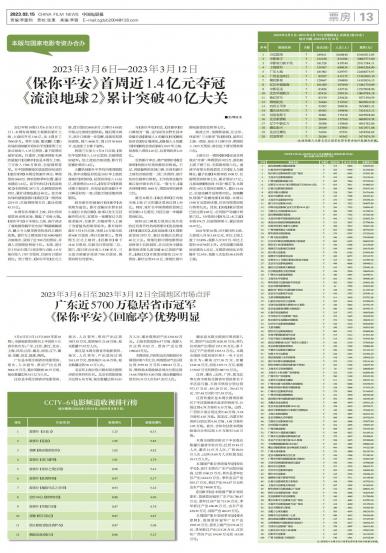 2023年第10周(3月6日至3月12日),本周有两部较大规模的新片上映,大盘回升至3.84亿,比上...