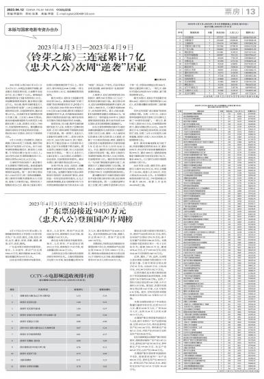 2023年第14周(2023年4月3日至4月9日),本周包含清明节假期,新老影片共同发挥作用,大盘攀...