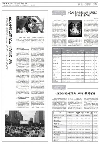 - 2023年第23周农村电影市场点评