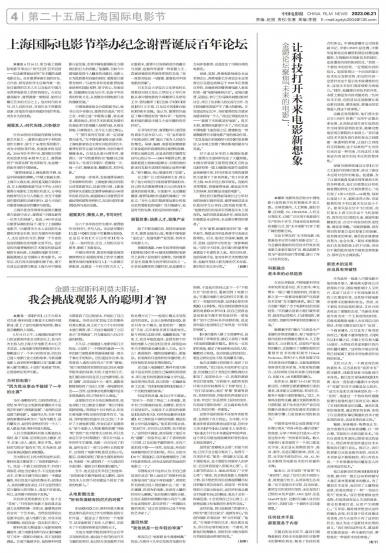 本报讯 6月16日,第25届上海国际电影节举办以“时代巨匠 百年回首——纪念谢晋诞辰百年”为主题的金...