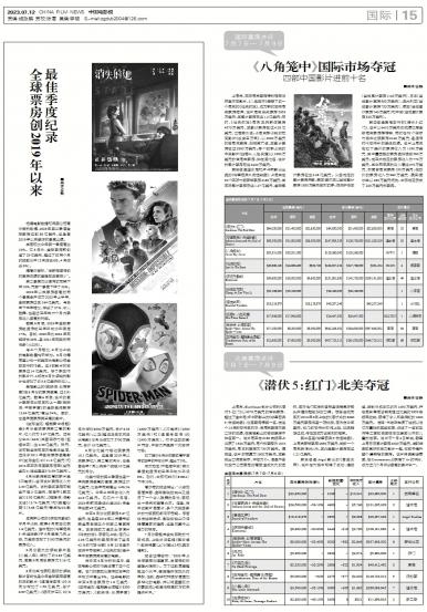 - 全球票房创2019年以来最佳季度纪录