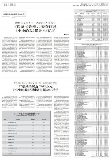 2025年第2周(1月6日至1月12日),元旦档后周票房大盘骤降,一周仅收入4.33亿,比元旦所在的...