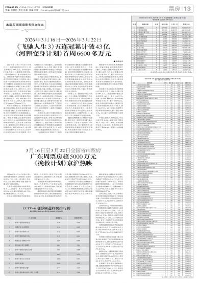 2026年第12周(3月16日-3月22日),全国电影票房3.27亿元,比上周减少了4500万元。春...